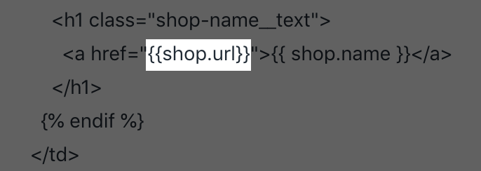 Asiakkaalle lähetettävät sähköposti-viestit on liitetty Shopify-kaupan osoitteseen (url). Linkki on väärä, jos kauppasivusto on tehty LiquidBloxilla. Linkin teksti {{ shop.url }} (mukaanlukien sulut) tulee vaihtaa kaupan oikeaan osoitteeseen (url) alkaen "https://".