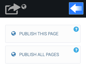 Klikkaa PUBLISH THIS PAGE tai PUBLISH ALL PAGES riippuen haluatko julkaista vain editorissa auki olevan sivun vai kaikki sivuston sivut.