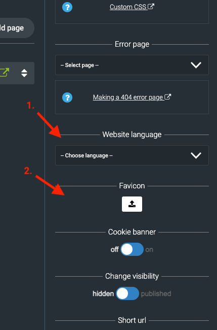 Muokkaa ainakin seuraavat tiedot sivuston asetuksista (Page manager -näkymän oikeanpuolinen palsta)