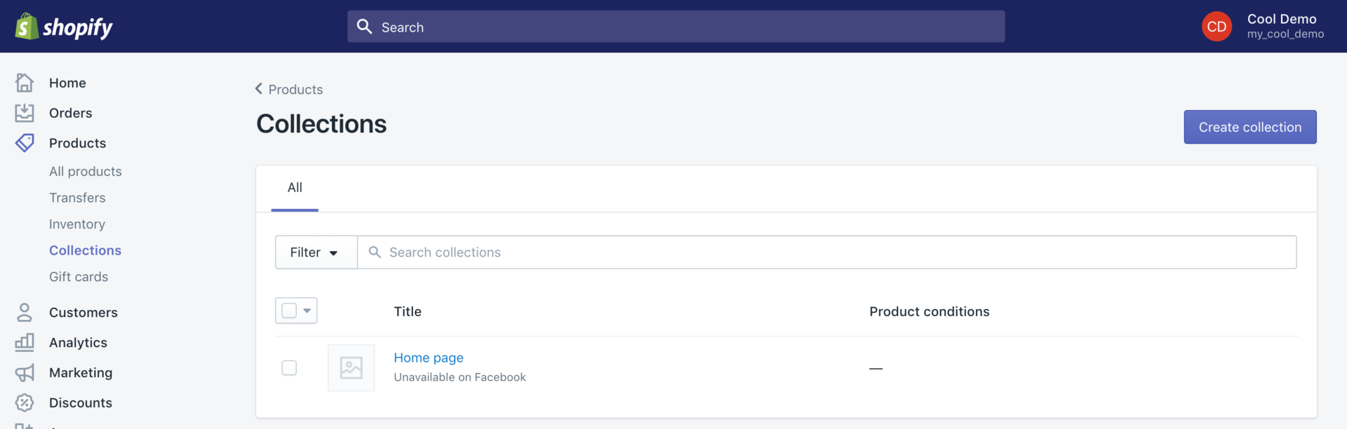 Shopify-alustalla tuoteryhmiä kutsutaan termillä collection. Tuotteita näytetään tuotelistoissa sen mukaan, missä tuoteryhmässä ne ovat.
