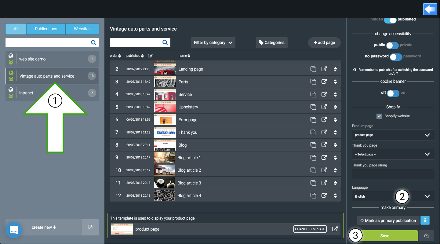 1. Klikkaa oikeaa sivustoa vasemmalla aktivoidaksesi sivuston tiedot oikealle puolelle